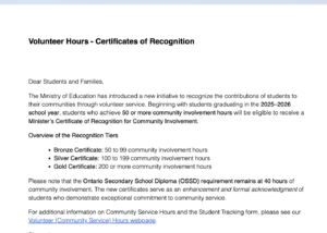 LDSB has a new award from secondary students who go above and beyond. Will help out their community and look good for their future. See thresholds below and check out the LDSB website for more info.